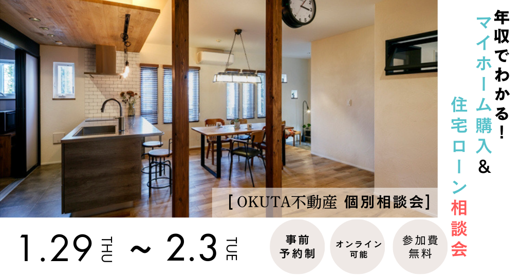 1/29-2/3【OKUTA不動産 個別相談会】年収でわかる!マイホーム購入&住宅ローン相談会/参加費無料・予約制(同業者の方ご遠慮ください)