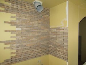 キッチンの壁面に、平田タイル:エクスマーク EMK-107/8A を使用しています。