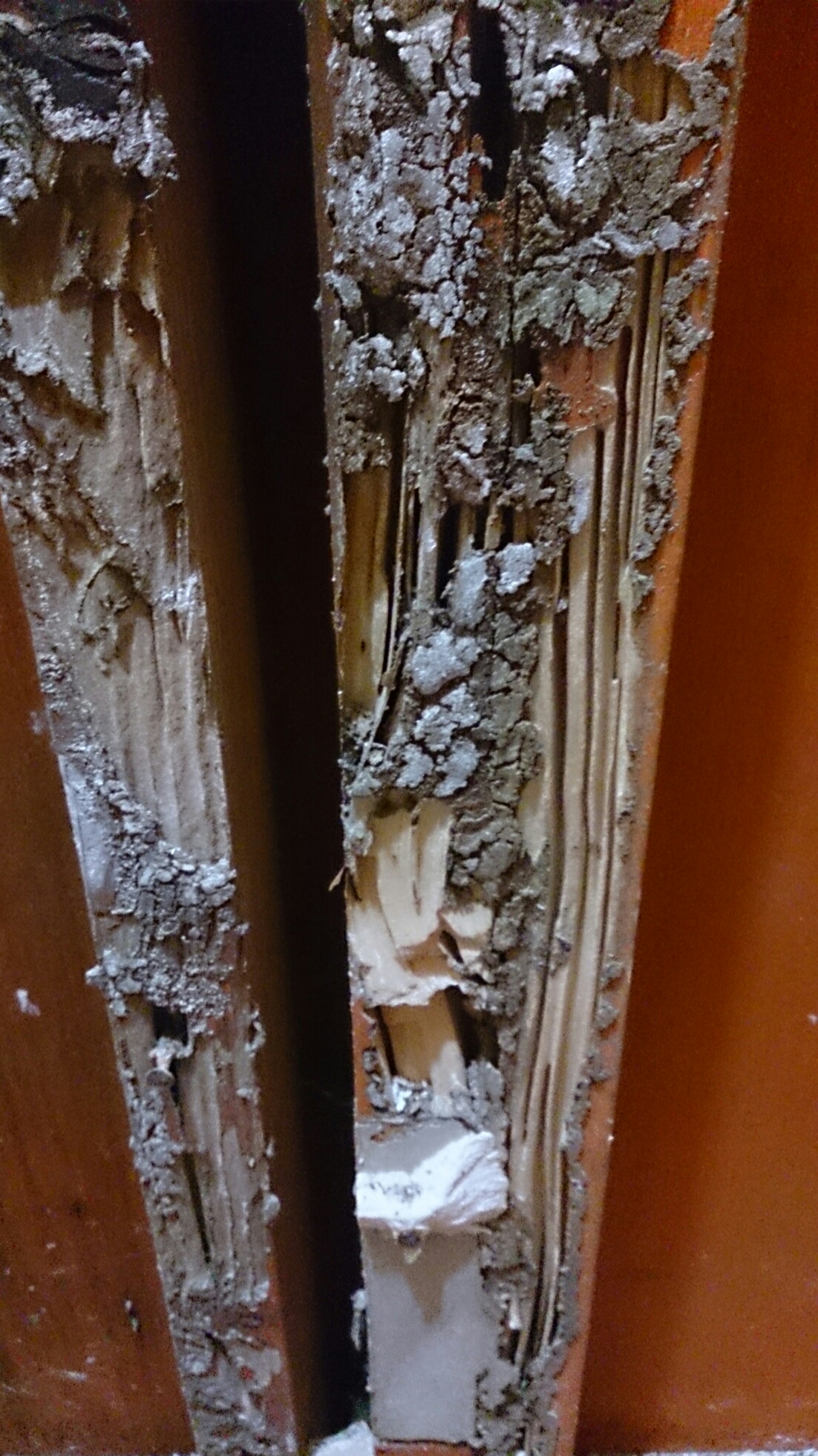 在来浴室を、解体したら、そこには白蟻たちの住みかが、残念ながら柱等の木材は、食べられてボロボロになっていました。...