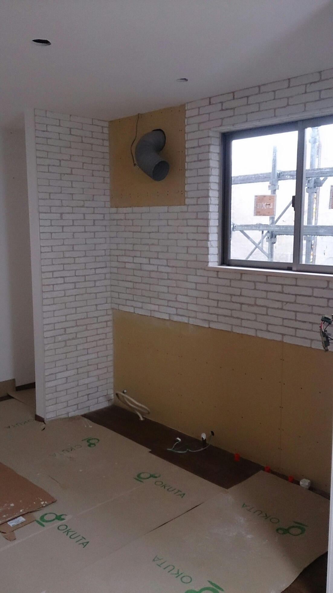 キッチンの、タイルが、貼り終わりました。 後はキッチンの、搬入待ちです❗...