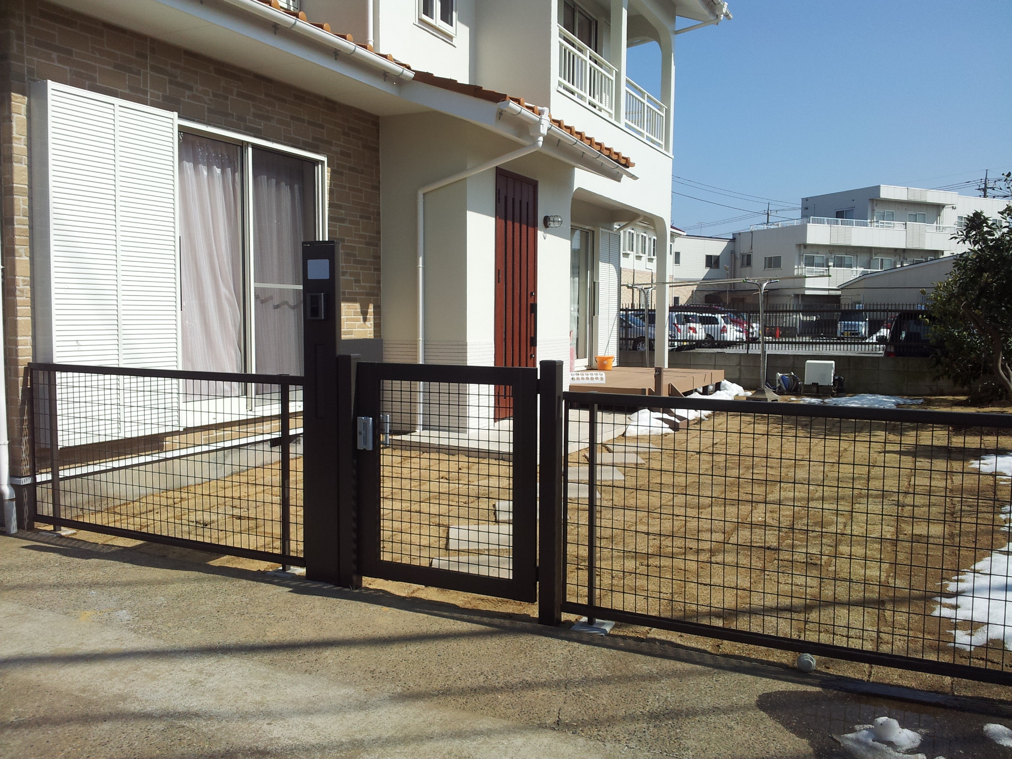 昨年末お引渡しの現場の外構工事をしています。 ワンちゃんのドックラン用に、新しく芝生をしきました。 ワンちゃんが逃げないように、フェンスの隙間を狭く施工しました。
