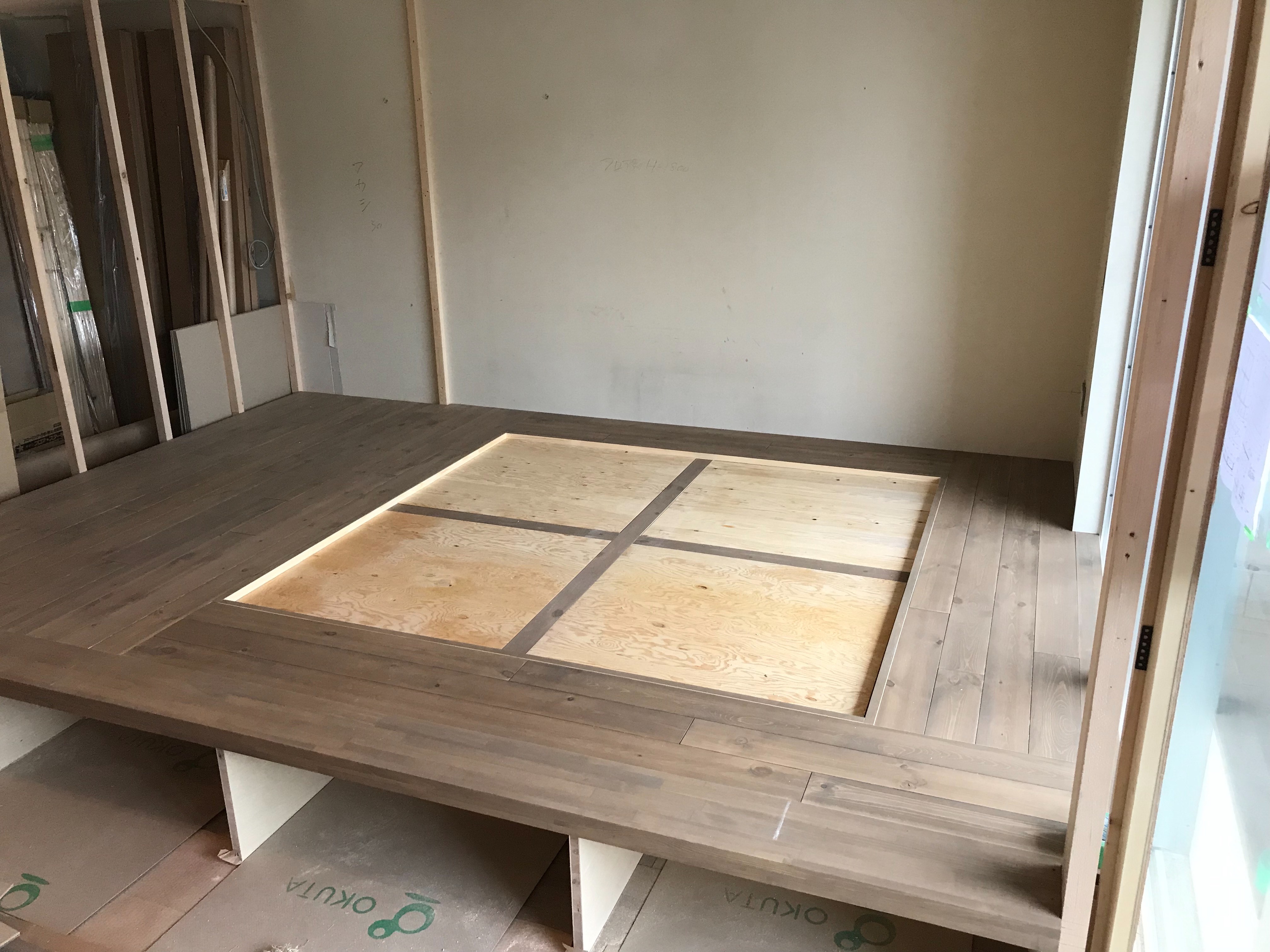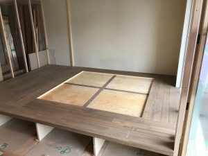 小上り収納造作中!これから引き出しを造作していきますよ☆