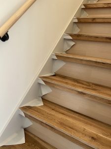 これから既存階段のササラと蹴込板にダイノックシートを張っていきますよ☆