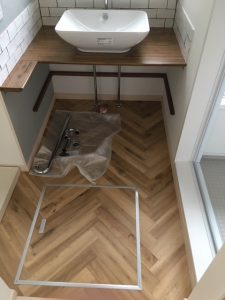 フロアタイルをヘリンボーン張りで納めましたよ☆☆