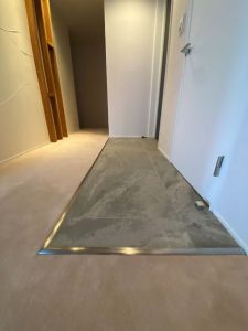 カーペットとタイルの見切りにステンレス見切りを採用しましたよっ。