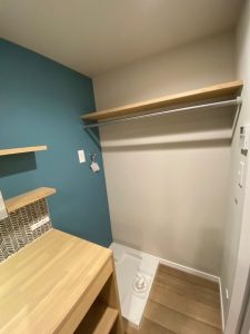 洗濯機スペースに棚とHPを造作しましたよ☆