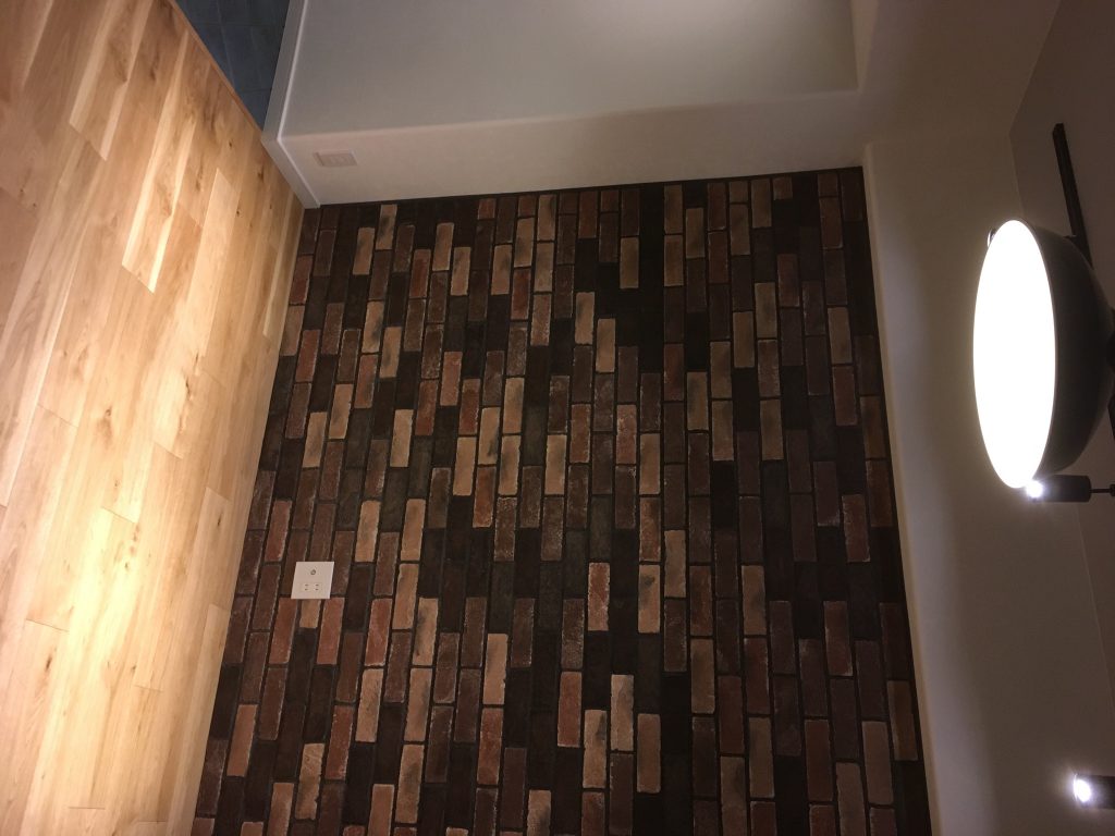 今回は壁にブリックタイルを施工しました。
