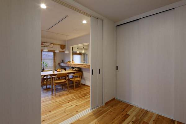 泊り客も頻繁にあるため、リビング部分は間仕切り建具を設置しました。