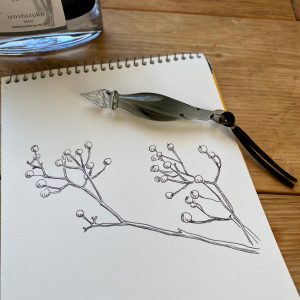 元旦に書初めならぬ描き初めをしました。 また増え始めているコロナ。 初詣にすぐにでも行きたい気持ちを抑えて家こもりの正月でした。 少しでも正月らしい事がしたいなと思い立って、 部屋に飾っていた赤い実の付いた枝を描...