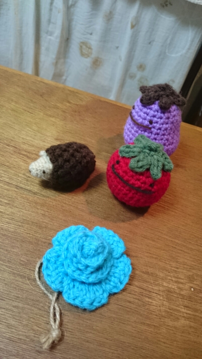 奥様が作られた手編みのマスコット達。