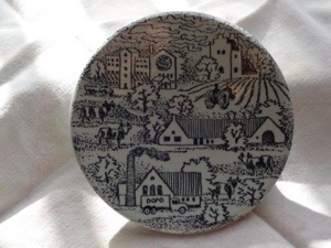 久しぶりに会った大学時代の後輩から、 デンマーク製の素敵な小皿をもらいました。 工場と畑と郊外の緑豊かな景色が目に浮かぶようです。 モノトーンなので、かえって想像力が働いて、空想するのが楽しいです。 大きさはちょうど手のひらくらいで、手に...