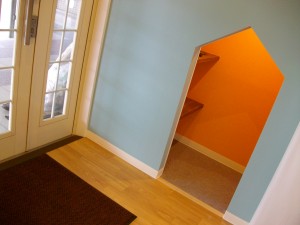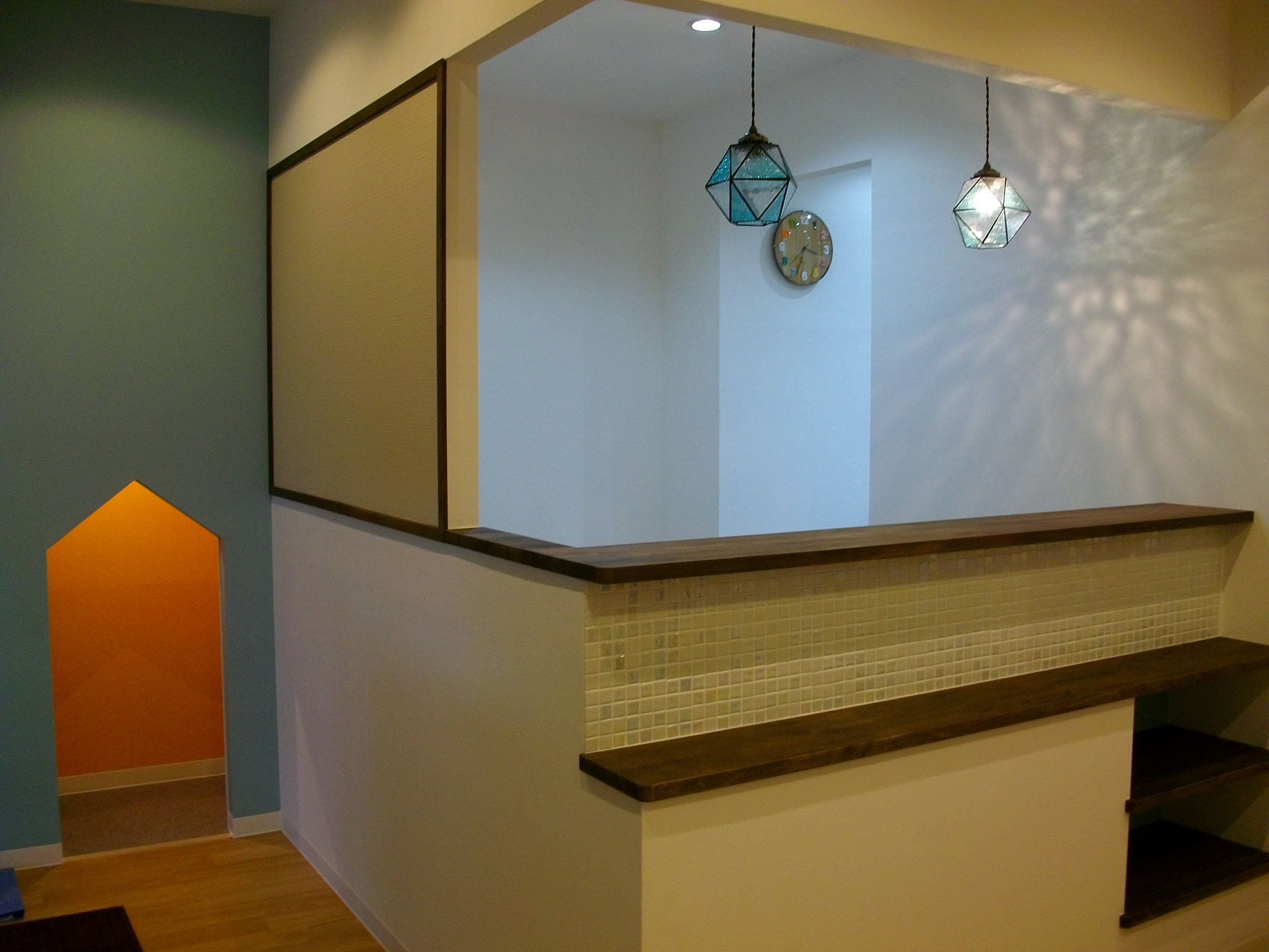 コーナーには三角の小さな入口・・・遊び心のあるキッズコーナーです。