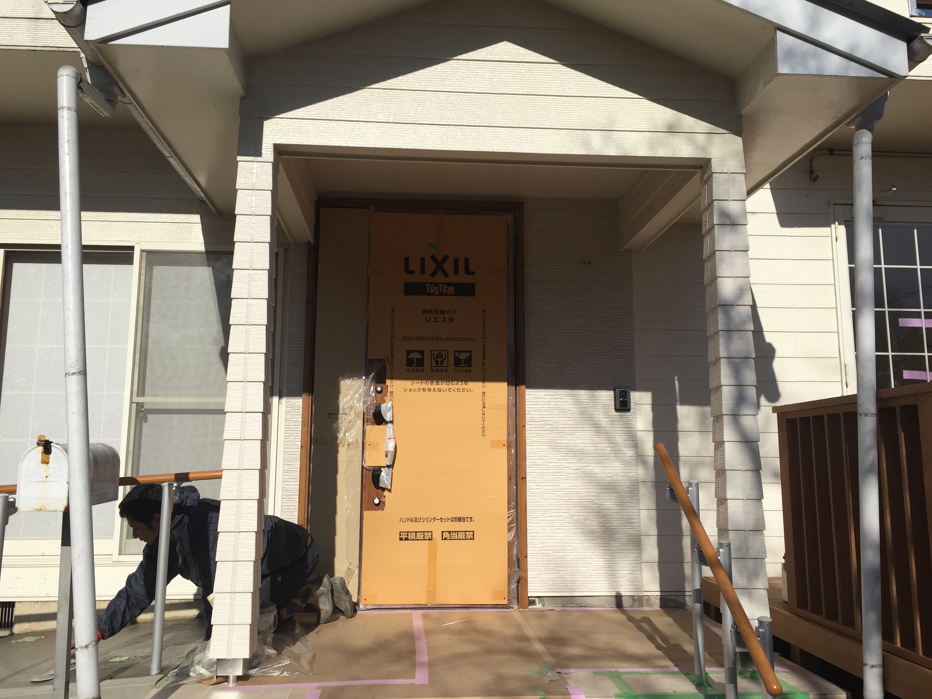 柱が傷んでいたので補修した際に サイディングを変えなければなりませんでした。 玄関ドアも変更する際、外壁は一部張替。 柱は既存とおなじ鎧張りのタイプ、 現在4枚タイプのものが多いらしく 既存のものよりは高さの狭...