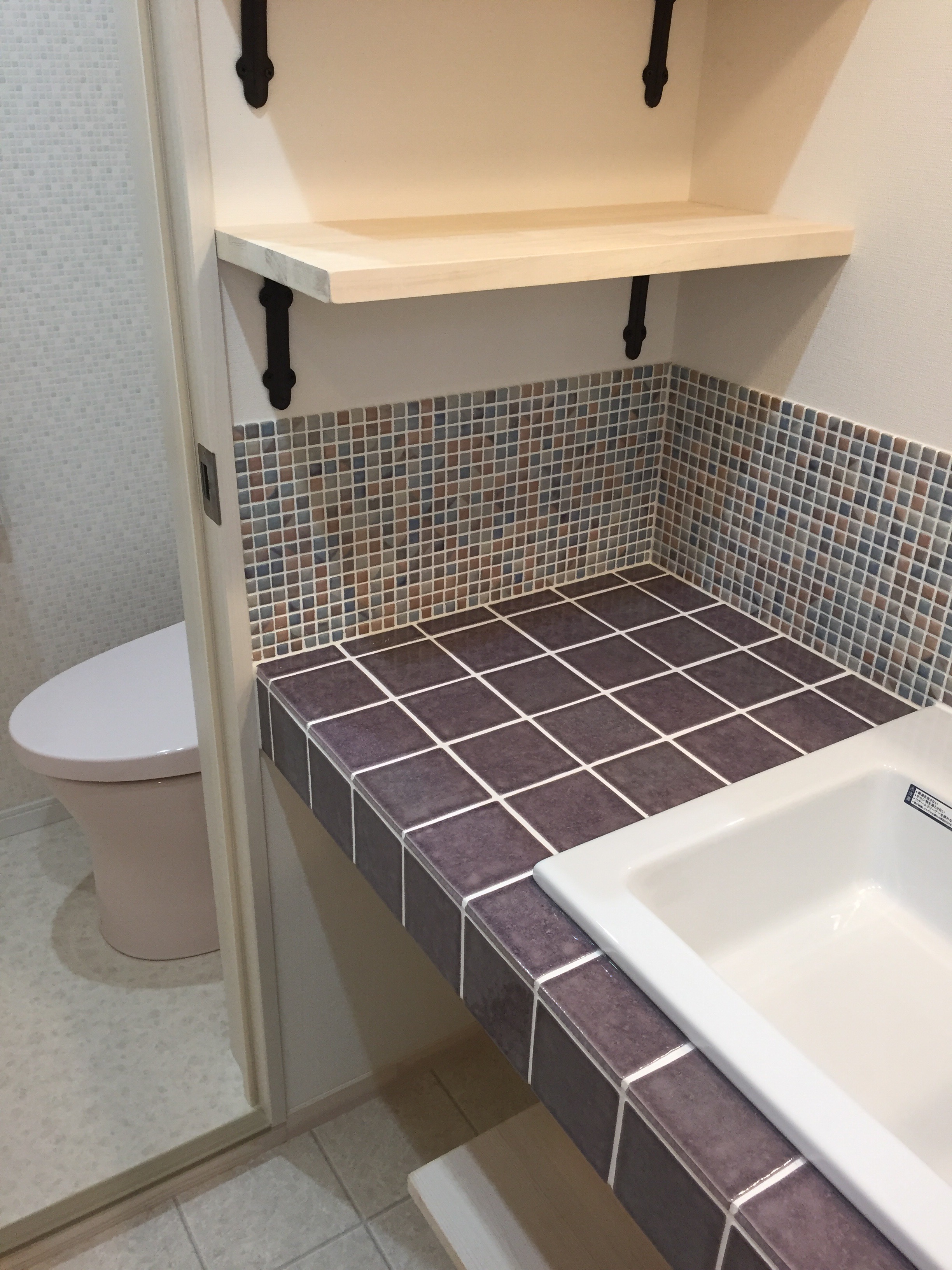 前回1階のブラウンの洗面台ご紹介しましたが 今回は女性らしく可愛らしい造作洗面台のご紹介です。 チラッと見えるトイレやその壁、床、これは 今回のリフォームでは手を加えませんでした。 以前お祖母様のためにリフォームしたこと...