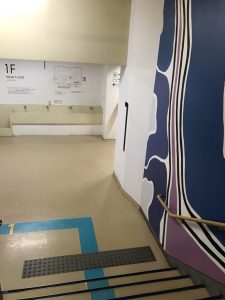 廊下の水道も教室も階段も、そのまま。