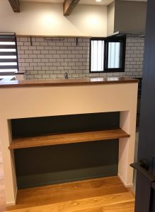 程よく隠れる高さまで壁を立て、飾り棚にしました。