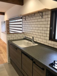 ダークグレーの目地で引き締め