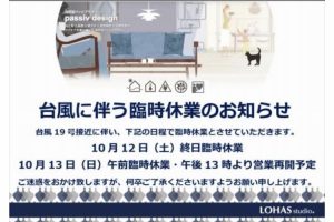 期間中は本社・コールセンター・LOHAS studio各店舗の全ての業務が臨時休業となります。