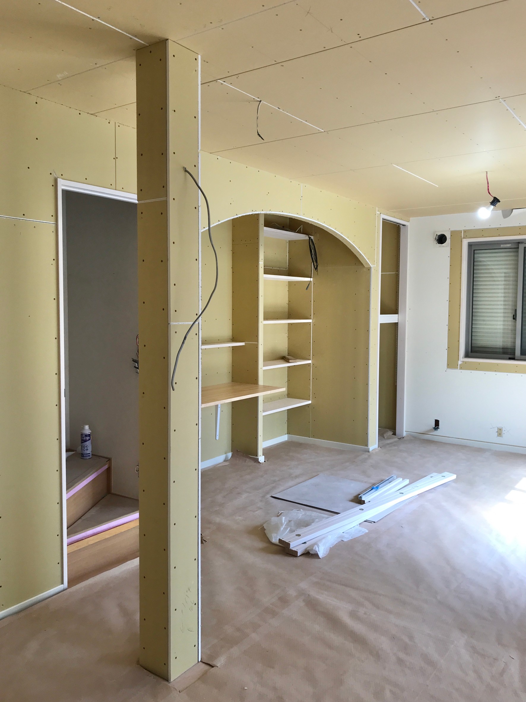 3LDKから1LDKに改装中のお家の木工事確認に行ってきました。 . 個室1室を残し、玄関からほぼワンルームです。 . . . 玄関土間を横長にして、メイン通路と パントリー→キッチ...