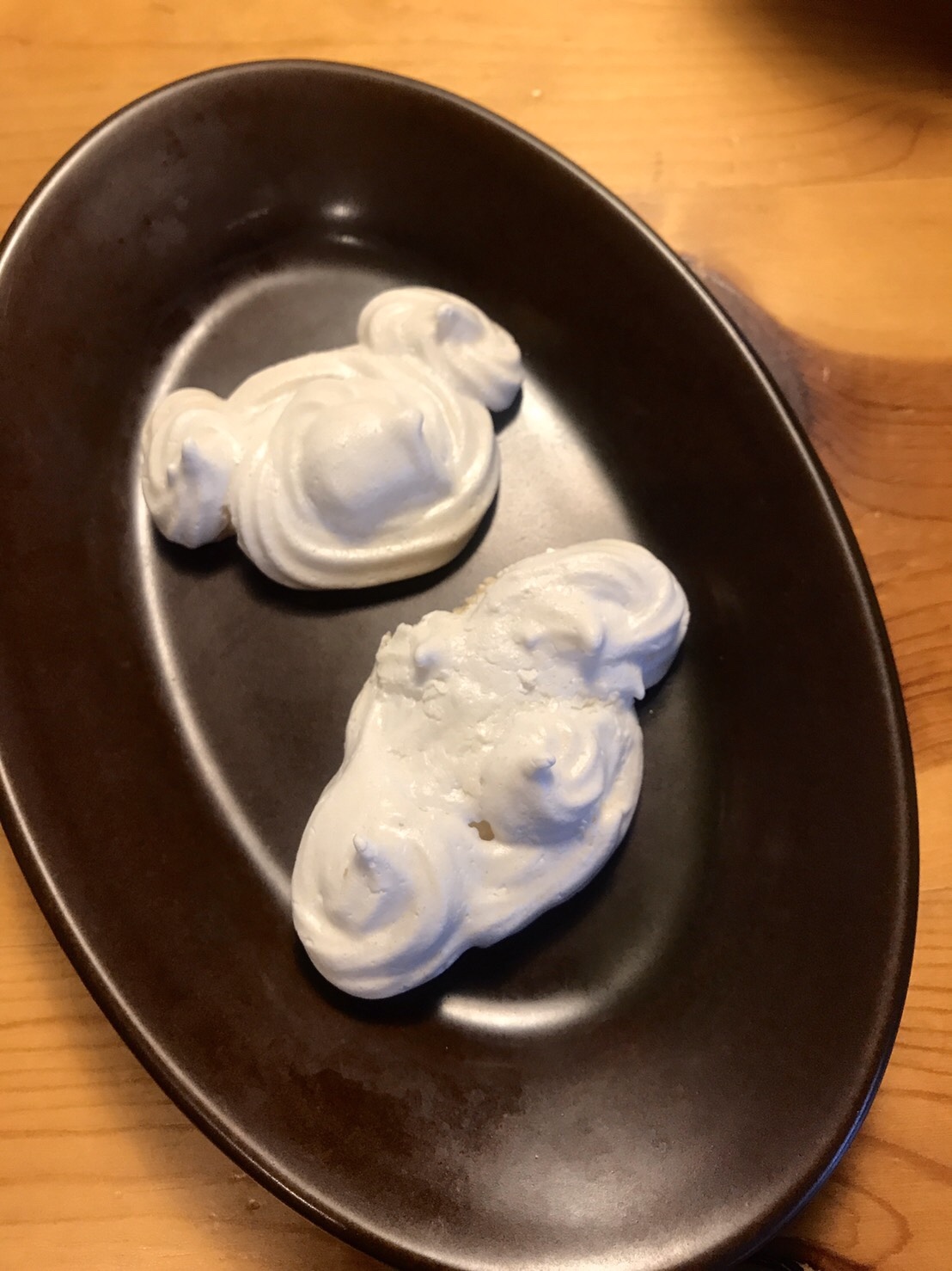 GWに入った娘… どこも行けず、友達にも会えず… 何かを作り始めました . . オーブンの中でグルグル廻っております… . . かわいいメレンゲ菓子ができました♪ . ...