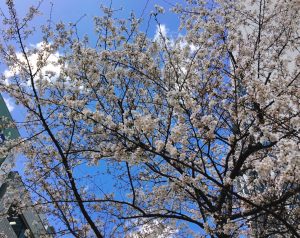 ビルの二階にあり、桜の木がちょうど目の前に位置するカウンター席で、一足早くお花見をしながらのランチ…