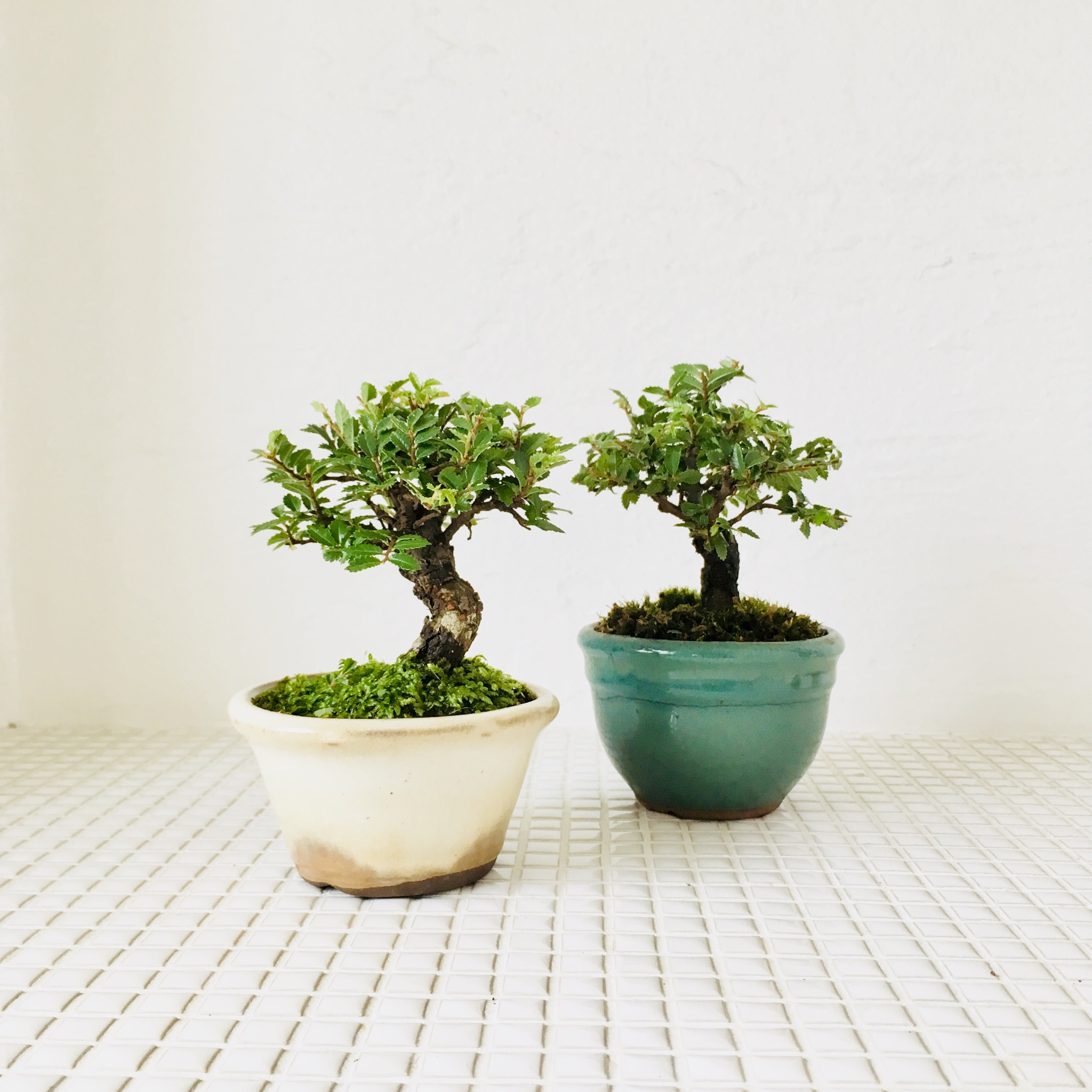 ケヤキよりも小ぶりなニレケヤキ。盆栽用のハサミで葉を整え、鉢に植え替えます。小さなお子様でもつくれる、手のひらサイズの盆栽です。