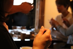耳かき一杯ほどのわずかな量で香りが変化する、繊細なお香づくり。