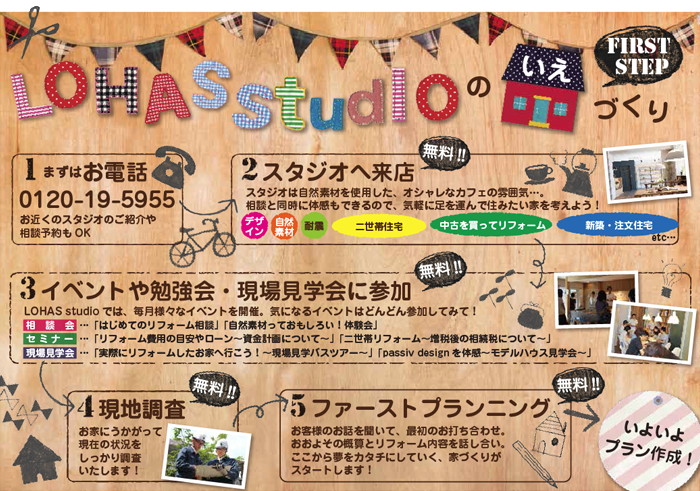 自然派デザインリフォームの「LOHAS studio」は、古の時も使われている自然素材だけを使用して仕上げた『おいしい空気・癒し空間』です。 デザイン・自然素材・空間が調和した心地よさを、皆様の五感で体感して頂けます。