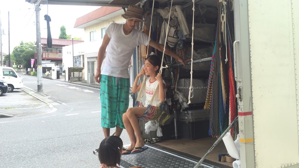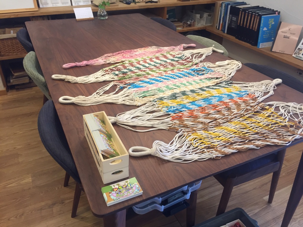 選んだ紐をハンモックの土台に編みこんでいきます!