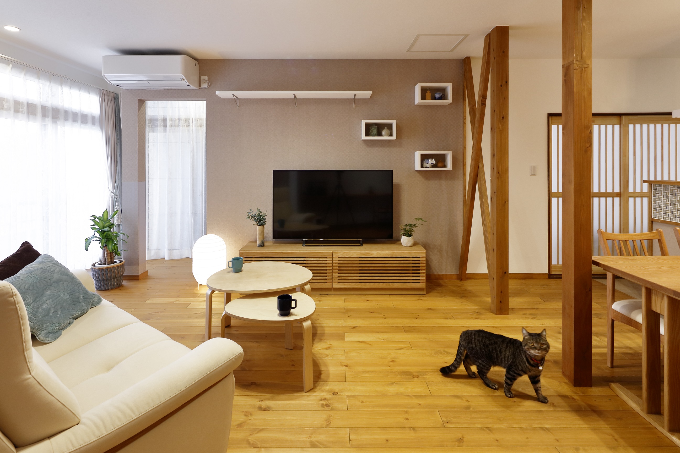 にやん子のいるお宅がリビングのリフォームをする時、ほとんどの方は何らかの付帯工事を要望されます。にゃん子の特性を生かし、どこに、何を設置するか、プランニングする事もリフォーム計画の大切なポイントです。