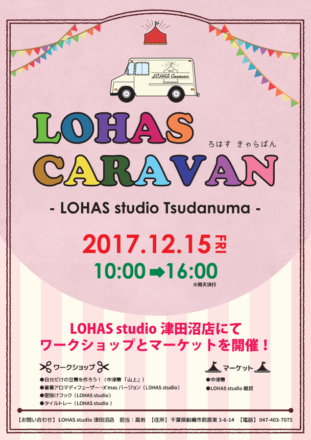 夏前にLOHASstudio越谷店で開催した、 「LOHASCARAVAN」 第2回目は、LOHASstudio津田沼店で開催致します。 今回はクリスマスももうすぐということで、 ...