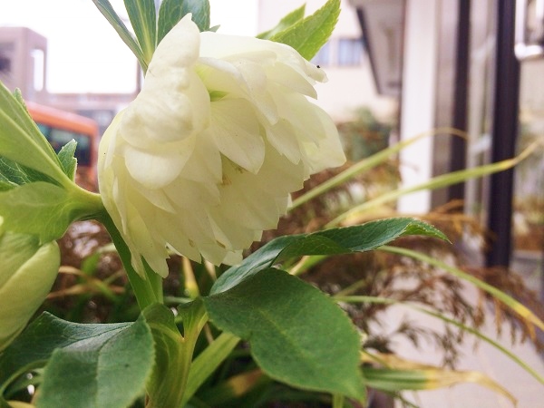 こっちにも紫のクリスマスローズの蕾が!