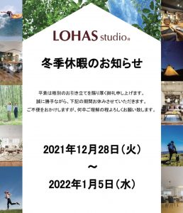 LOHAS studioでは、下記の期間を冬季休暇とさせていただきます。
