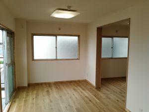和室二間とダイニングキッチンと納戸という間取りを間仕切り壁撤去し、1LDKにリノベーションしました。