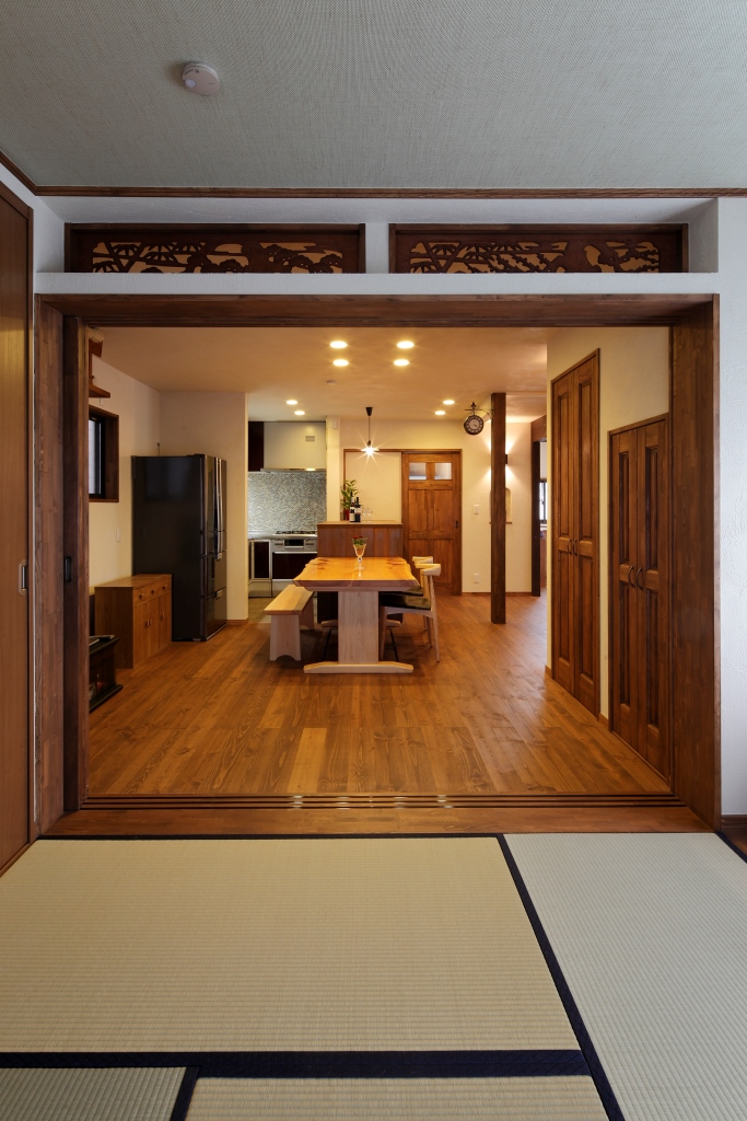 和室から見るダイニング。既存利用した欄間は近頃みなくなりましたが、かっこいいですよね。