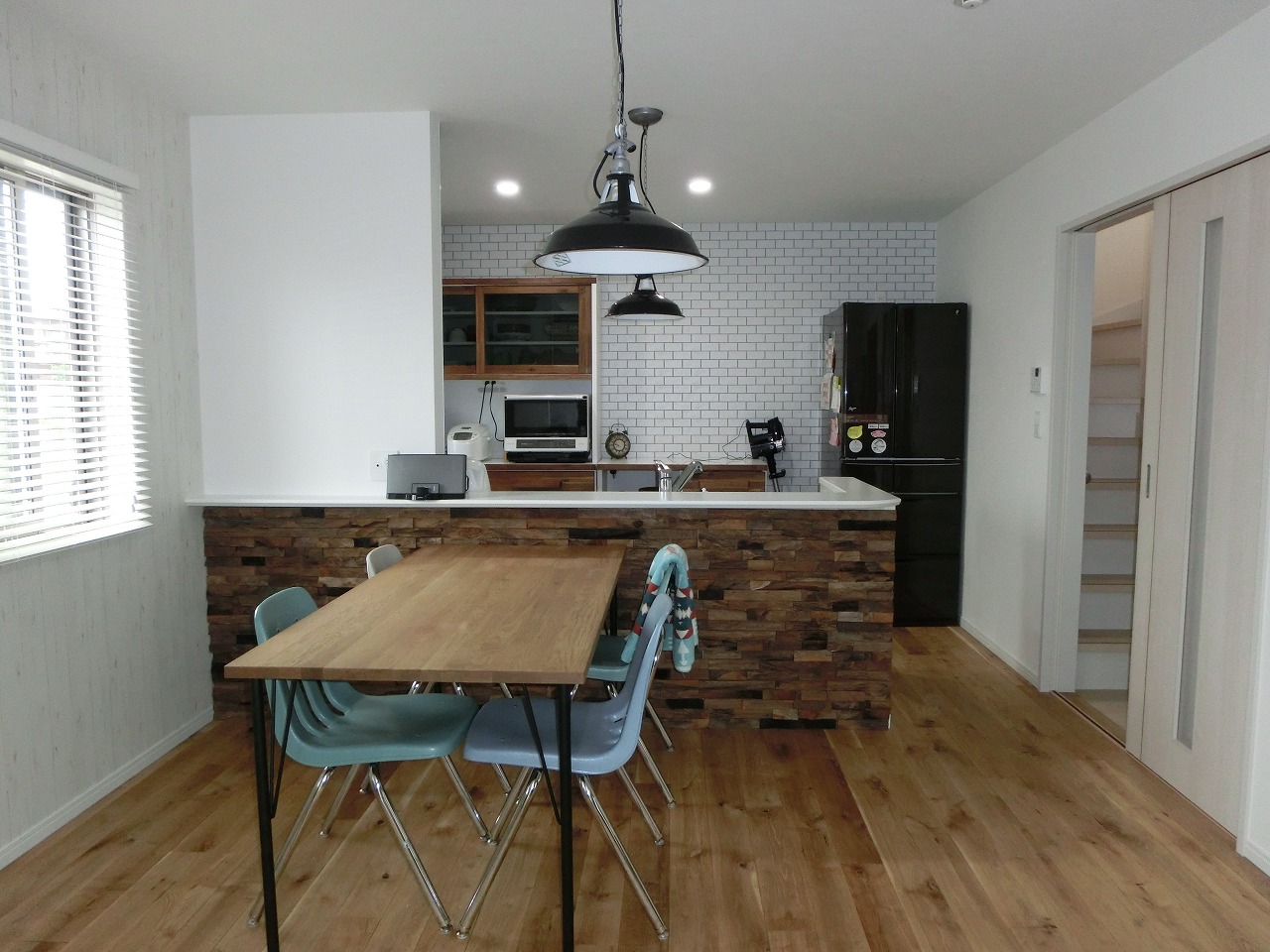 巾120ミリのナラ無垢フローリングを施工させていただきました後に、