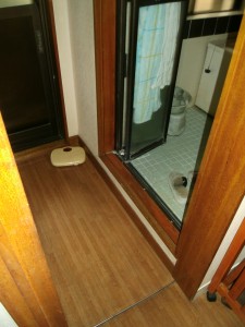 タイル張りの浴室は、どうしても洗い場に流れた湯水が洗面所に流れ込まないように、出入り口の部分が10~15cm程度立ち上がっています。