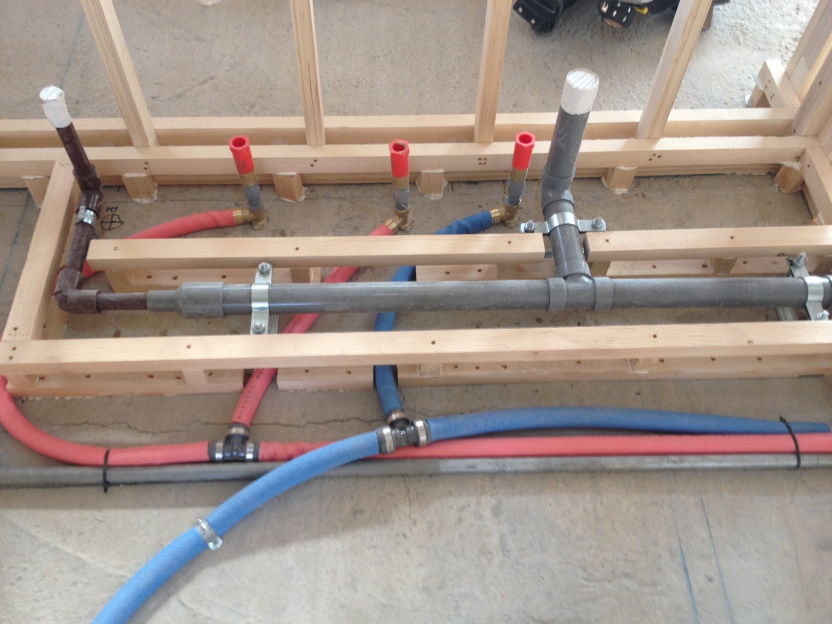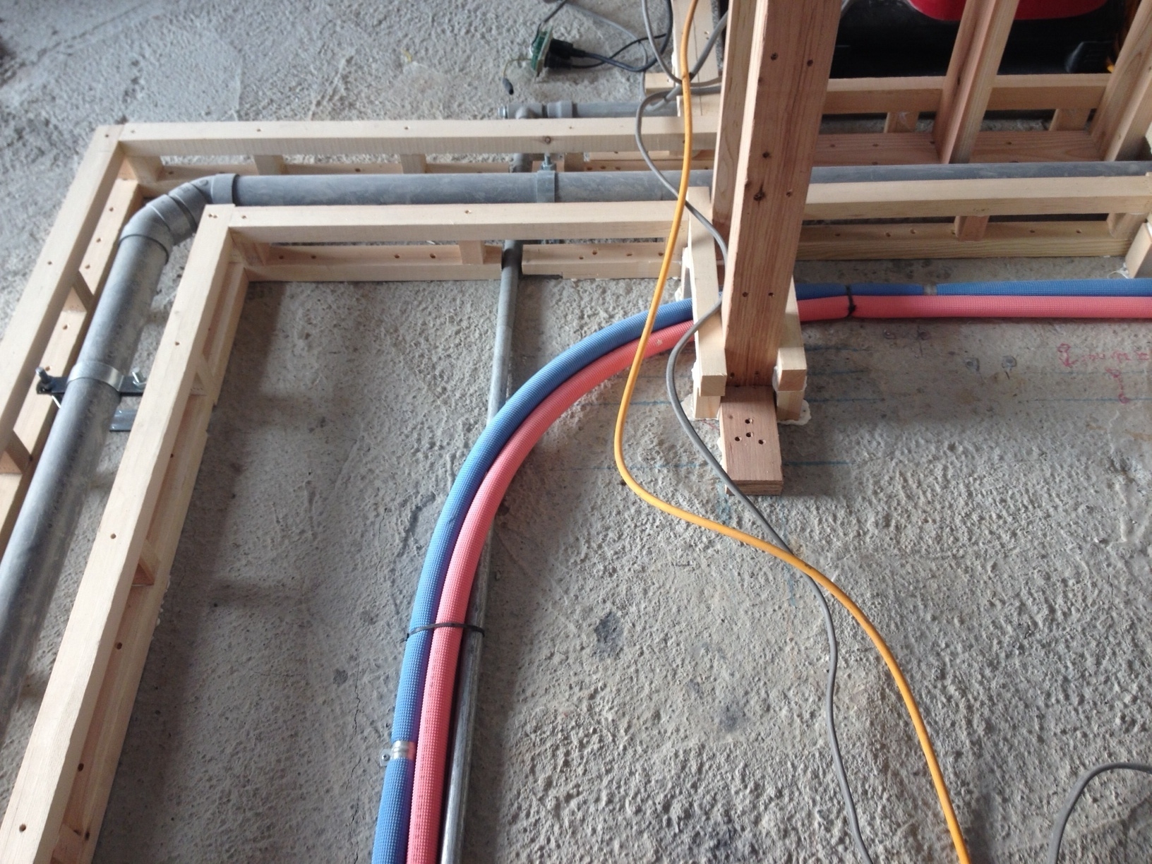 今回は、食器洗洗浄機の為の配管も切り廻しています。