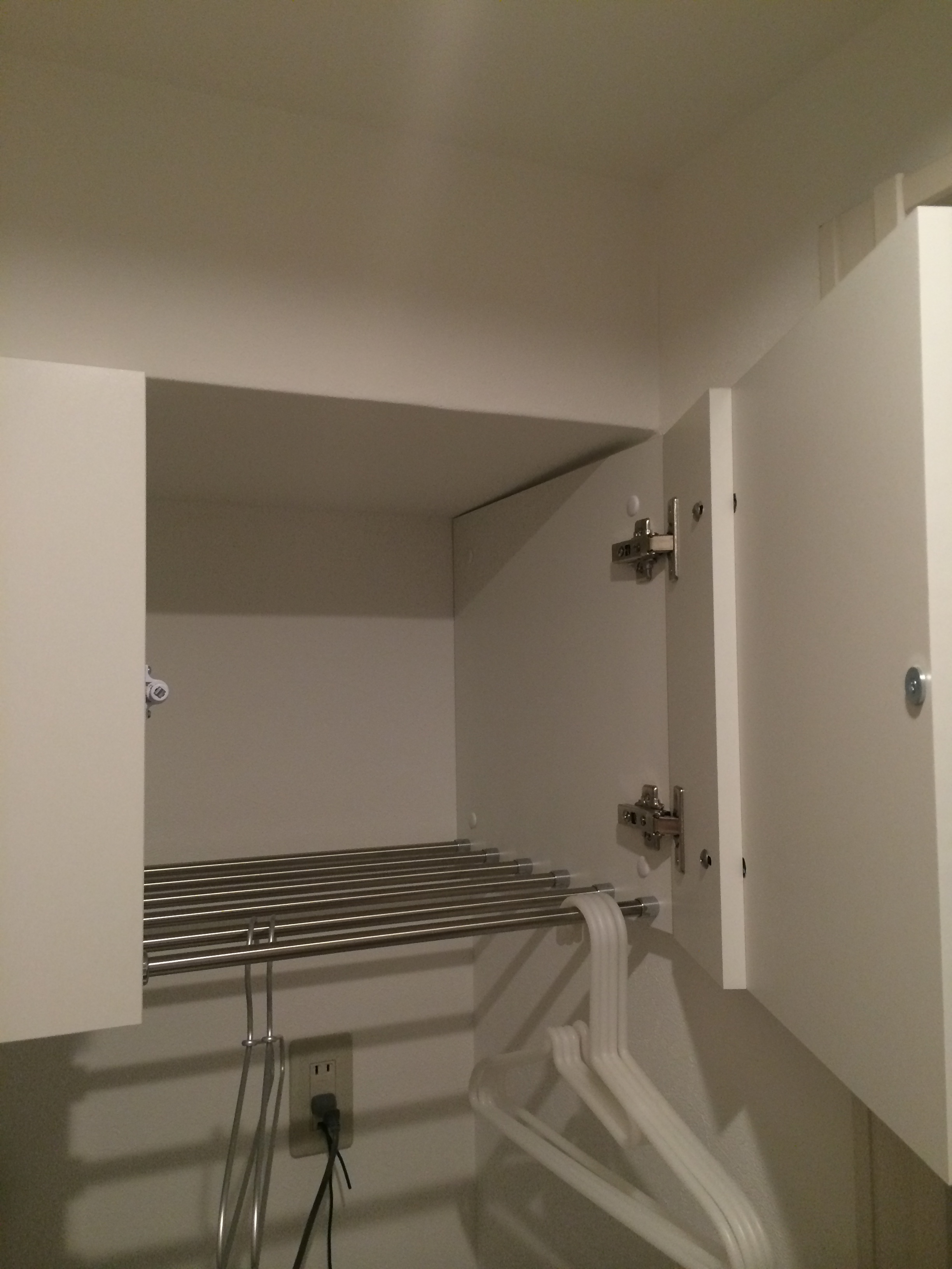もう片方はしっかり扉で隠れる収納なので、隠せる収納として活躍