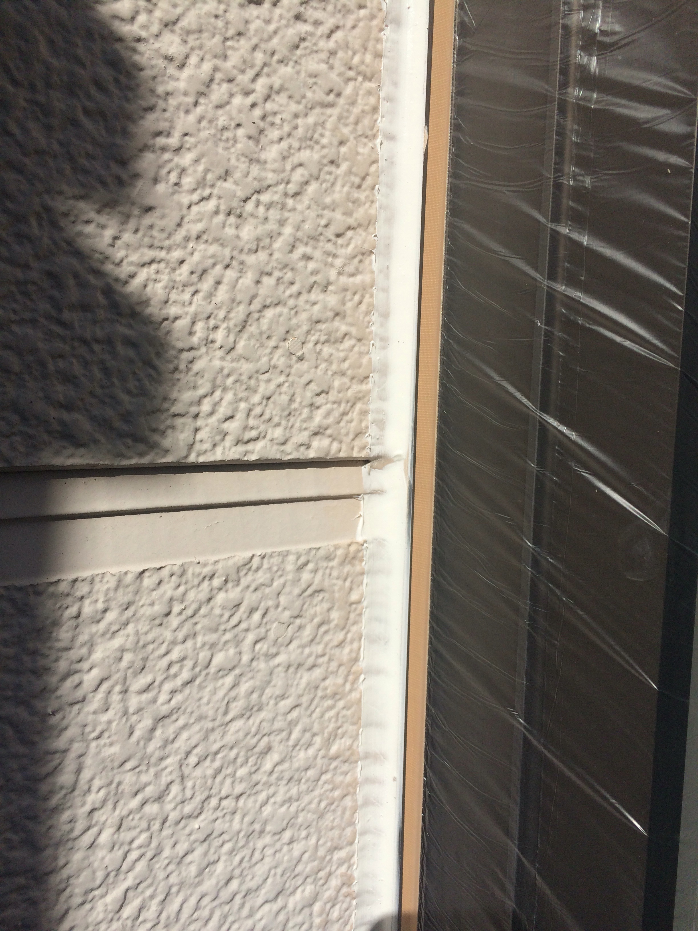 写真のように窓廻りのコーキングは既存のコーキングの上から打っていきます!