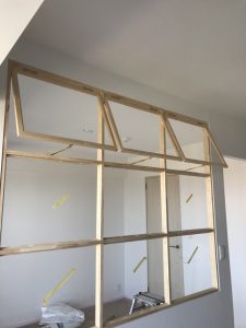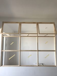 新築マンションのリビング、洋室の間仕切り壁に室内窓をつけたい!お部屋に解放感を持たせたい!というご要望でした。