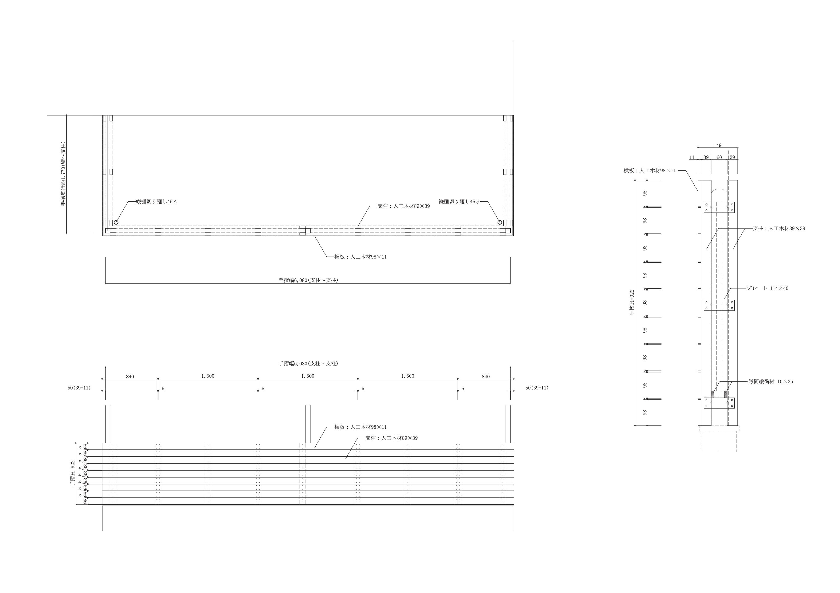 ■既存バルコニー手摺を人工木材の支柱を挟み込みにより設置をしました。