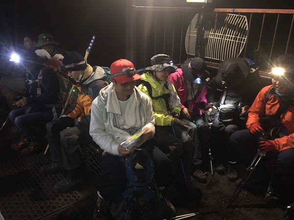 なかなか眠れなくて・・・そのまま夜中の2時にはご来光目指して出発。
