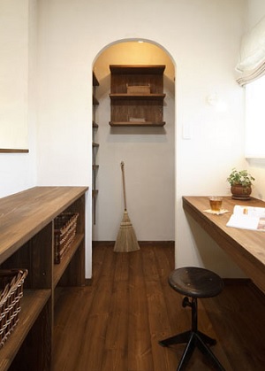 オープン棚の向いにある ワークスペースも うらやましいです♡