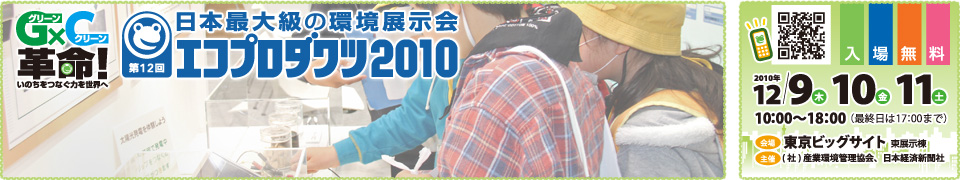 今日から三日間、東京ビッグサイト東展示棟で、エコプロダクツ2010が開催されます。 http://eco-pro.com/eco2010/inde...