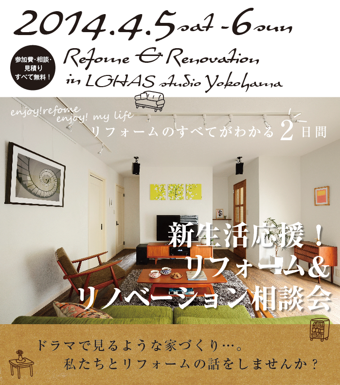 LOHAS studio 練馬店にて、1/24(土)-1/25(日)の2日間、[予約制]リフォーム&リノベーション無料個別相談会を開催致します。中古を買って賢く!お得に♪ ちょっと見積りを頼む前にお気軽に相談会へ! ドラマで見るような家づくり・・・。私たちと一緒に、リフォームのお話をしませんか?