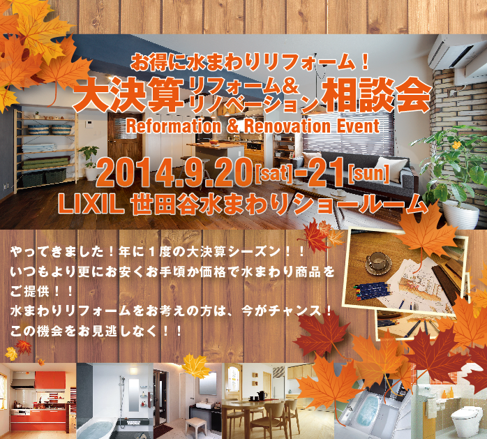 リフォーム相談会 in LIXIL世田谷水まわりショールーム【お問い合わせ】0120-19-5955