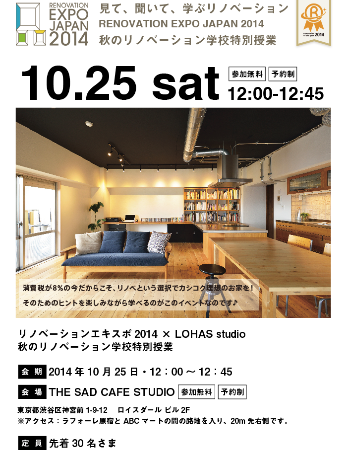 今回は、LOHAS studioがリノベーション・エキスポ2014にセミナー講師として参加させていただきます。