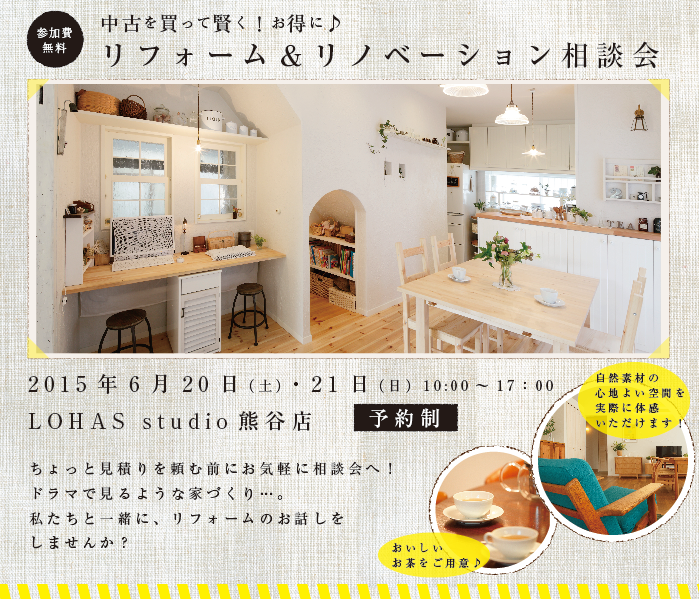 LOHAS studio 練馬店にて、1/24(土)-1/25(日)の2日間、[予約制]リフォーム&リノベーション無料個別相談会を開催致します。中古を買って賢く!お得に♪ ちょっと見積りを頼む前にお気軽に相談会へ! ドラマで見るような家づくり・・・。私たちと一緒に、リフォームのお話をしませんか?
