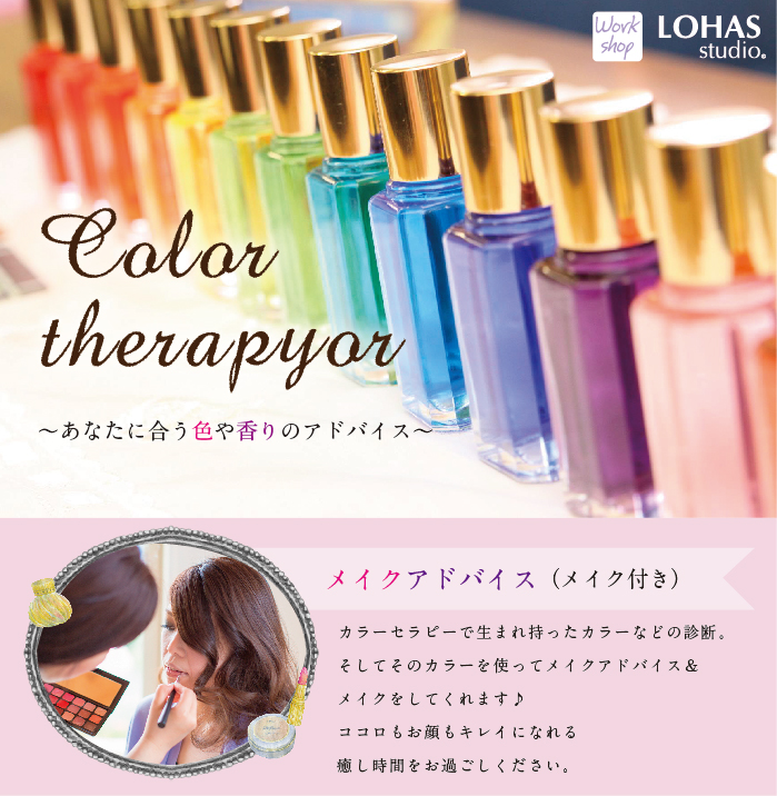 | 時間 | 10:00 - 12:30 全5回 一回:カラーセラピー20分+メイク20分